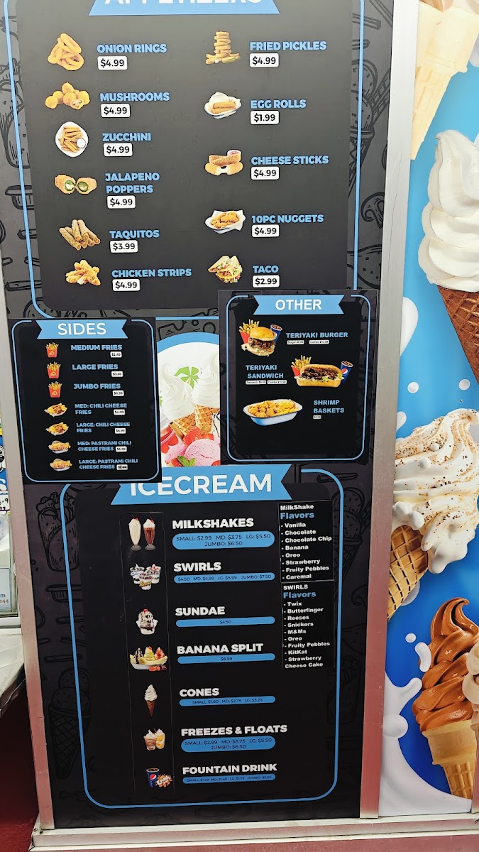 Chocolate, strawberry, vanilla, peanut butter, chocolate chip, pineapple, fudge.