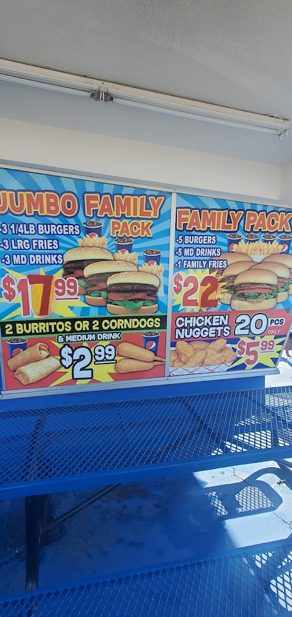 Burger, chicken nuggets or strips.